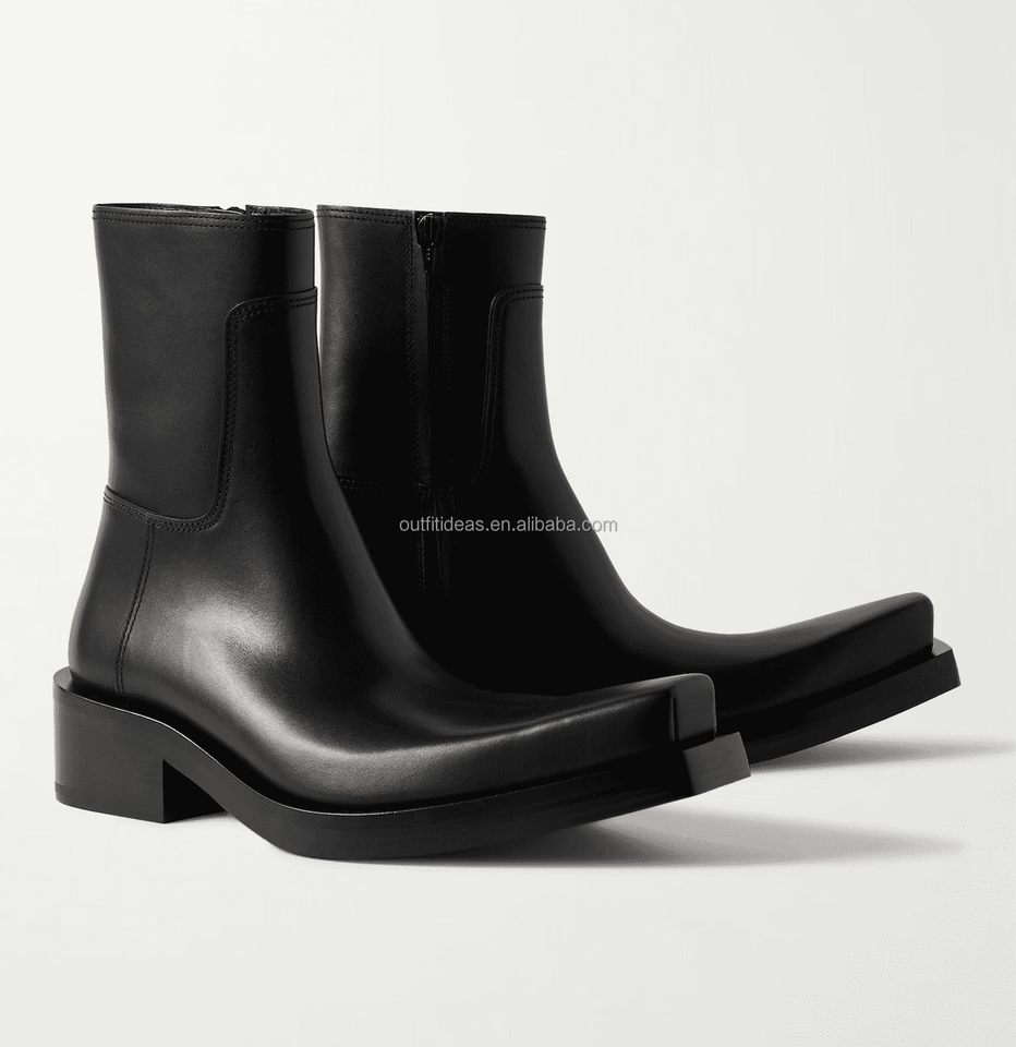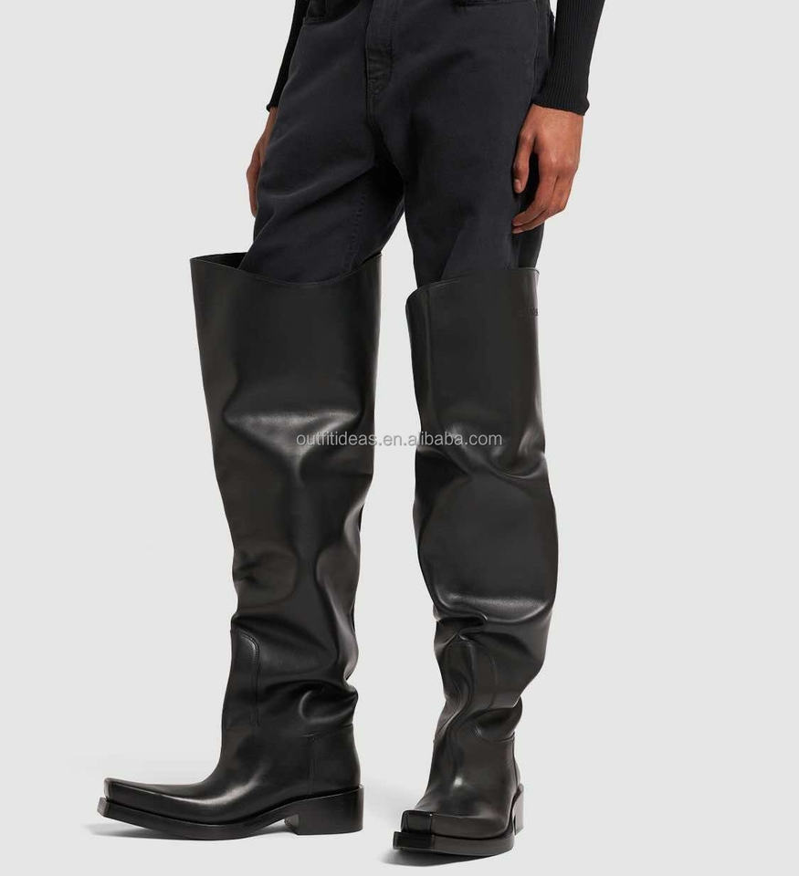 Bottes de motard en cuir pour homme à bout exagéré, au-dessus du genou, noires, unisexes, Santiago Wader, bottes à la cheville en cuir à bout carré exagéré