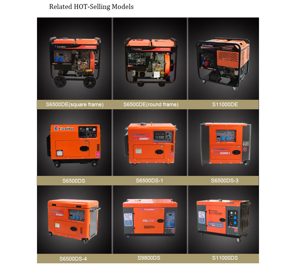 Générateur diesel silencieux portable Excalibur durable, puissance de sortie 8 kW, démarrage électrique, pour chantier de construction
