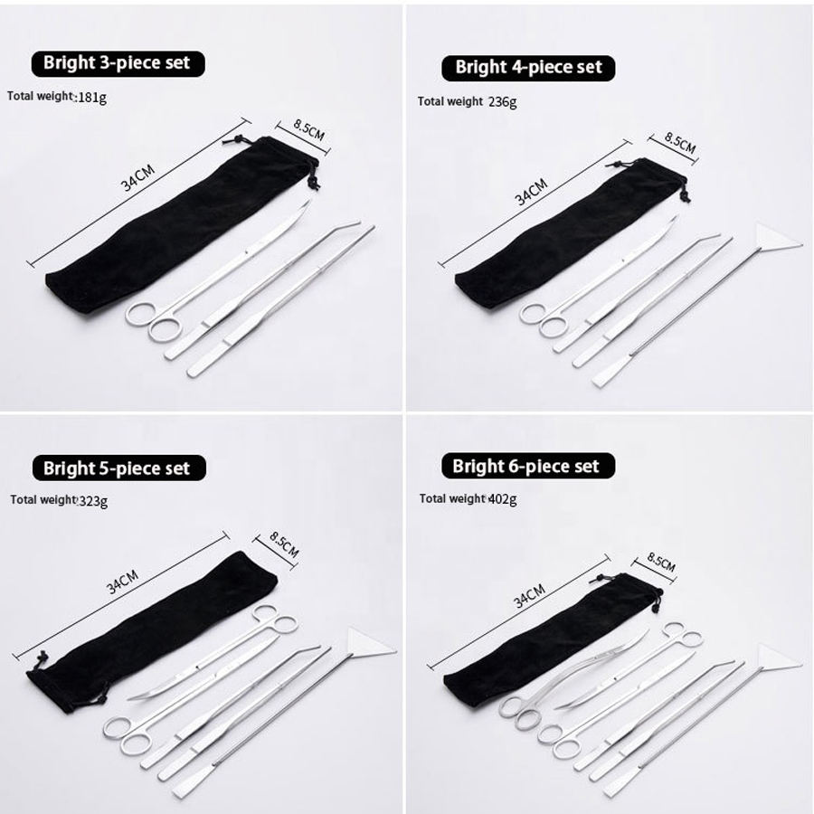 Kit d'outils d'aquarium en acier inoxydable transparent