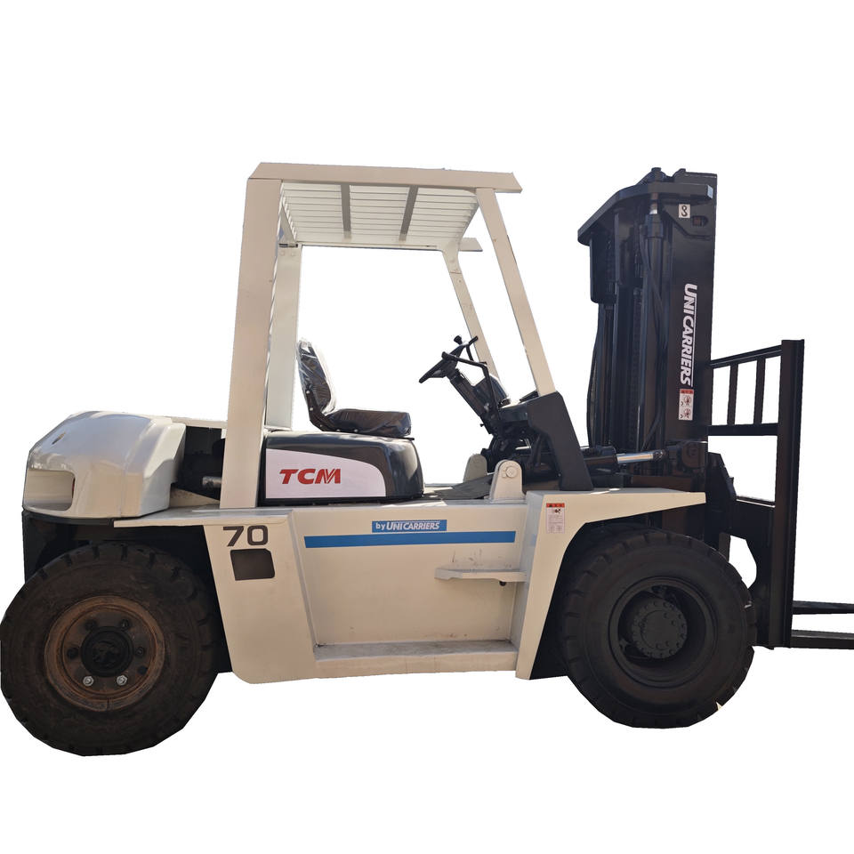 Chariot élévateur TCM FD70 d'occasion en excellent état, 7 tonnes, avec moteur diesel, déplaceur latéral hydraulique, pneus pleins - Origine Japon