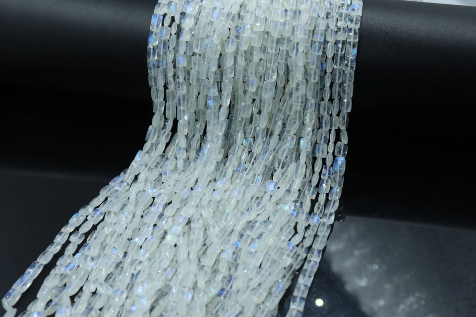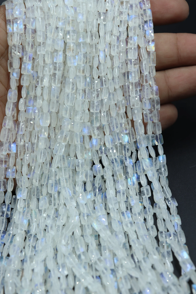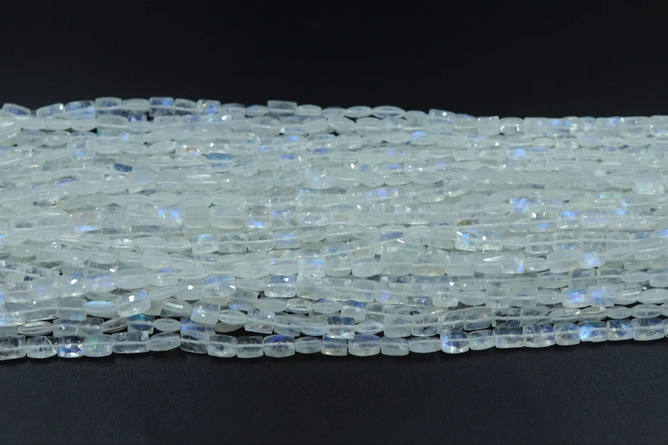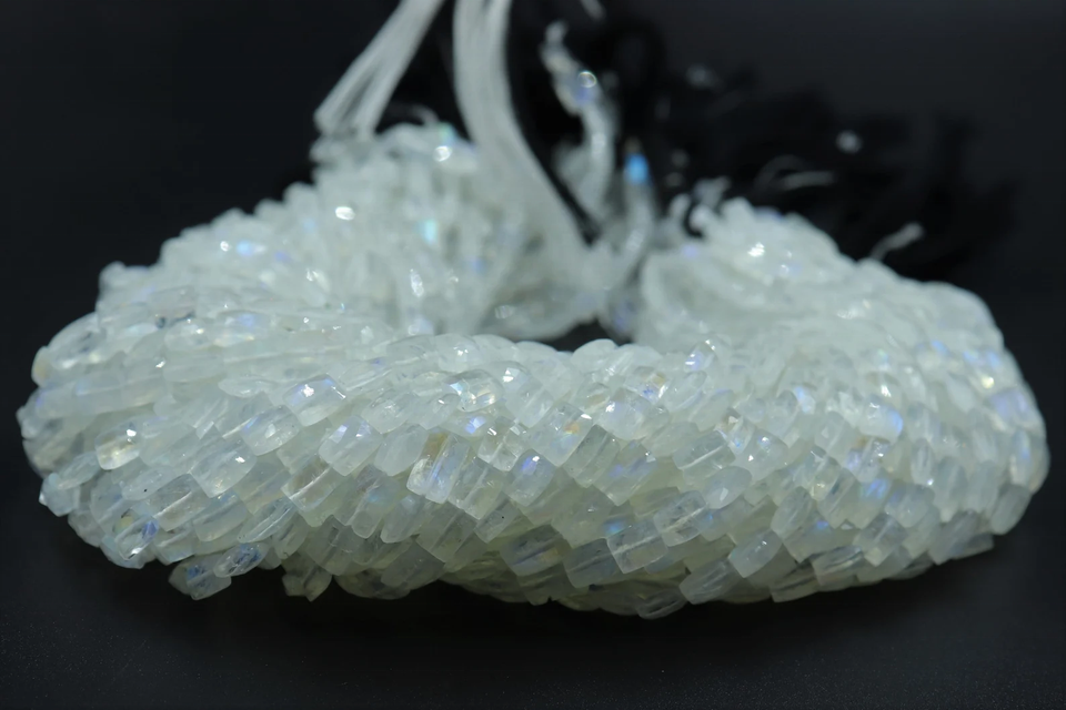 Excellente forme carrée à facettes 4*7 MM feu naturel blanc arc-en-ciel perles de pierre de lune perles de pierre
