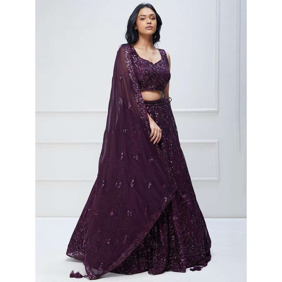 Excellent Violet Paillettes Georgette Réception Porter Lehenga Choli