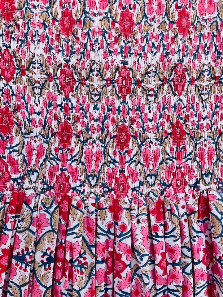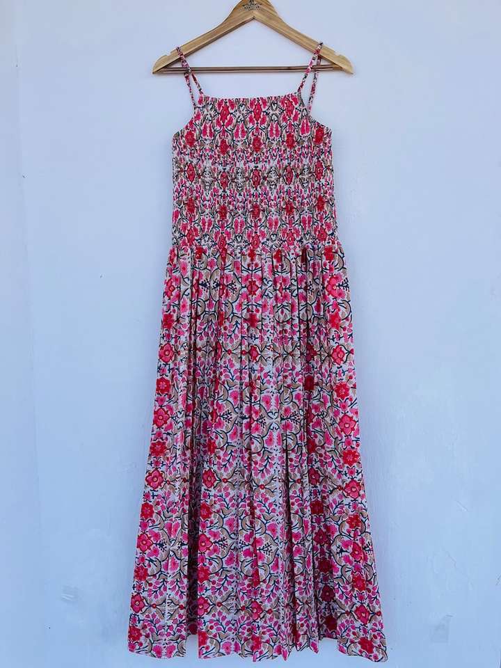 Antique Floral Printed Maxi Dress 100% Cotton Excellent Quality for Regular Wear Casual Henley Neckline Natural Long Ties