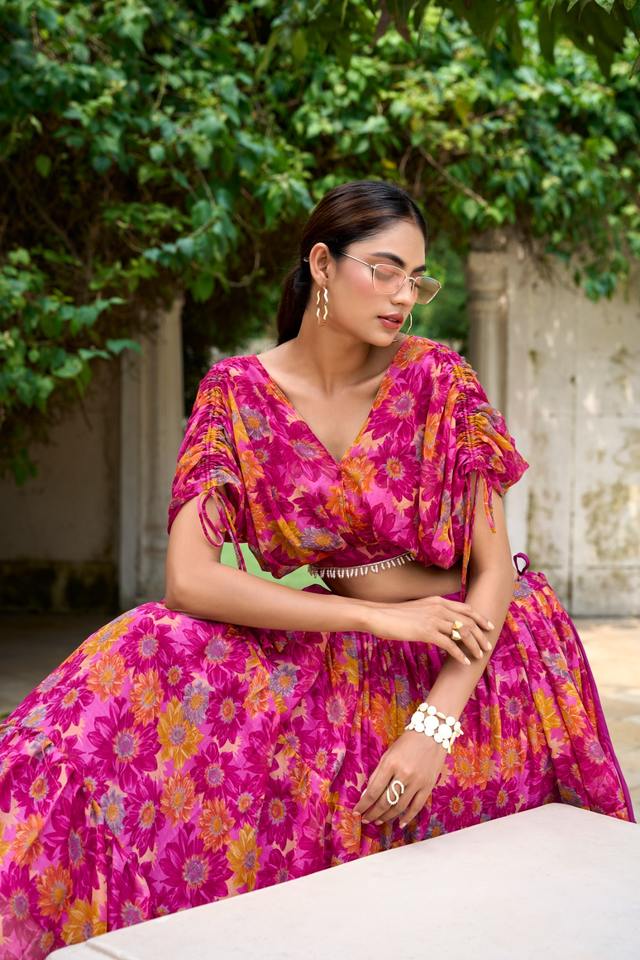 Chiffon de créateur d'excellente qualité Lehenga Choli avec chemisier brodé pour la fête et les fêtes disponible au prix d'exportation