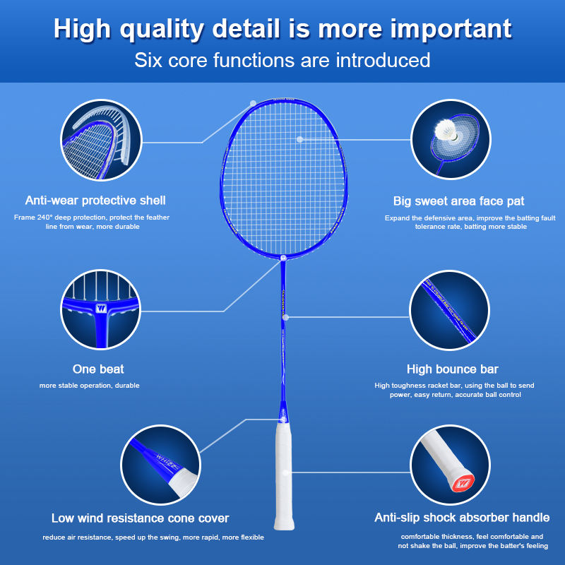 Excellente qualité raquette durable petite quantité minimale de commande raquette de badminton d'entraînement sportif de bonne qualité