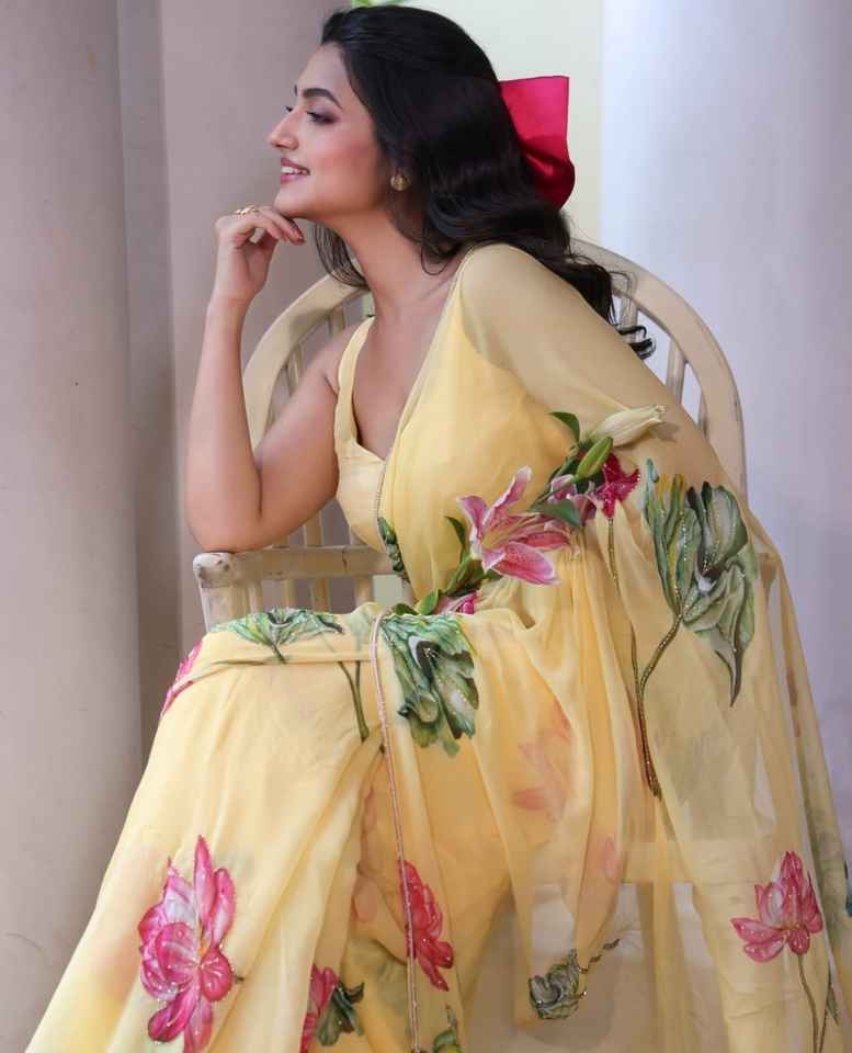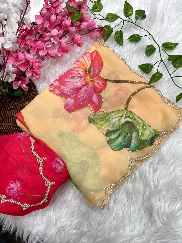 Excellent Quality Georgette With Floral Prints And Handwork Saree