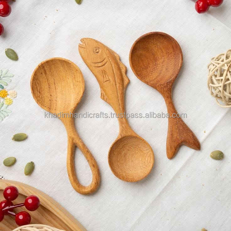 Petites cuillères en bois à long manche faites à la main d'excellente qualité pour servir dans les hôtels, les restaurants et la maison