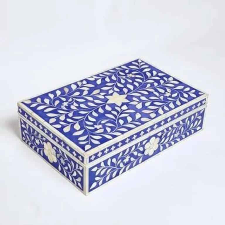 Boîte d'incrustation d'os fabriquée artisanalement de luxe Conception personnalisée faite à la main en Inde Idéal pour les bagues, les colliers, les bracelets et les accessoires