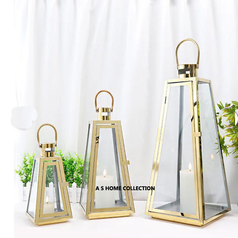 Excellente qualité métal de haute qualité plaqué or et lanterne en verre clair style de vie qualité béton Unique bougie pot bureau à domicile