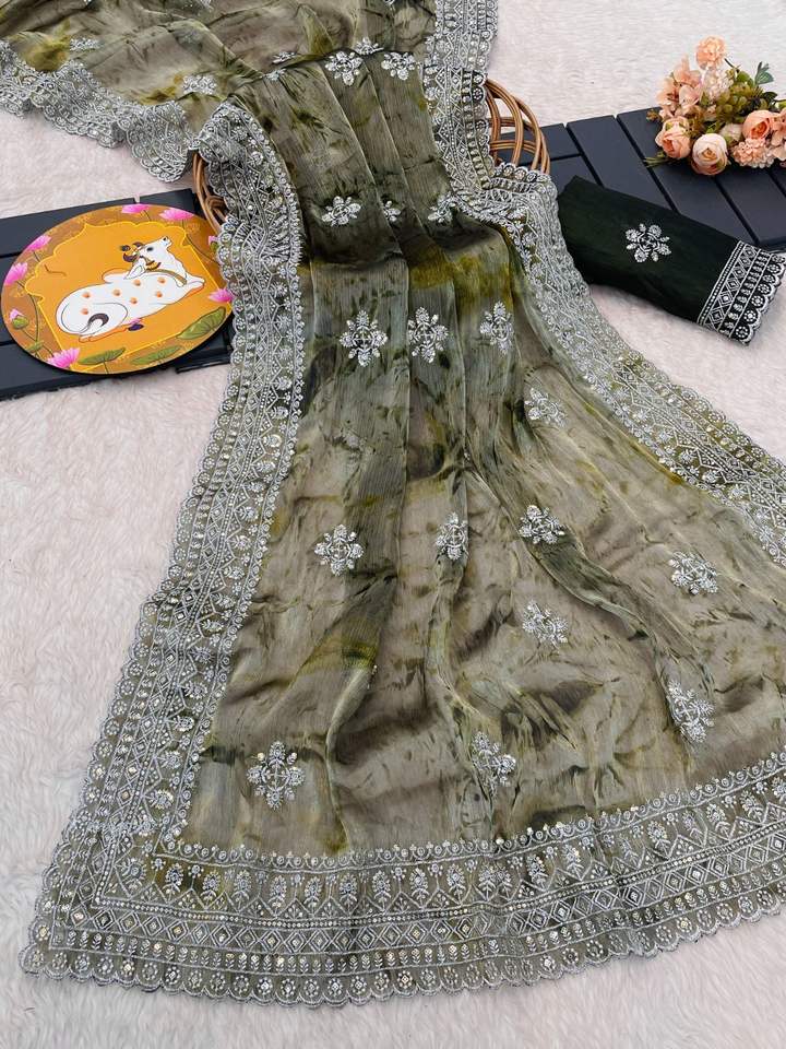 Excellente qualité la plus fantaisie tendance vêtements à la mode Bur Burry Spray impression Saree avec 3 mm séquence travail femme mode