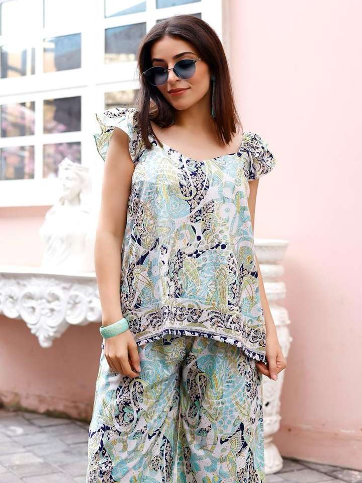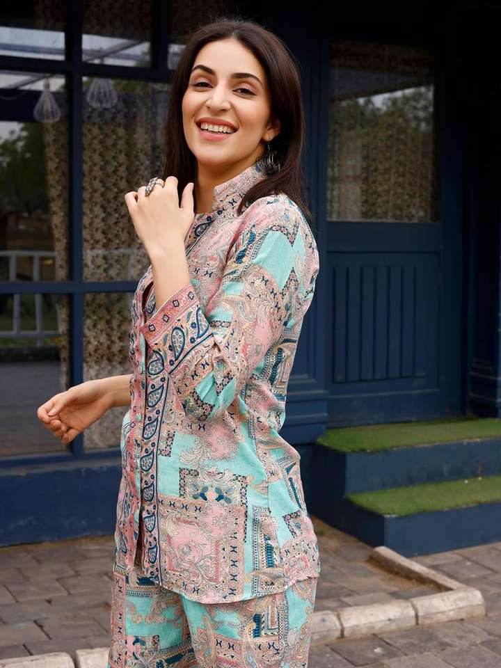 Tissu de rayonne de la nouvelle collection de créateurs moderne Co-ord Western Wear Surat fabriqué d'excellente qualité pour le moderne pakistanais indien
