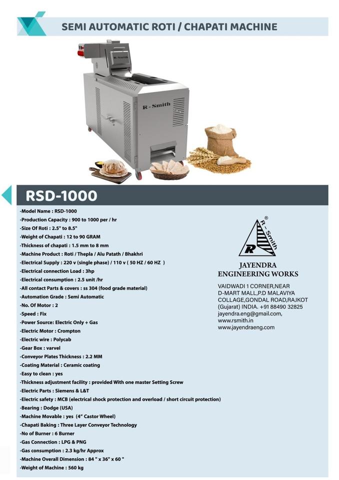 Machine à chapati et roti semi-automatique RSD 1000 de qualité supérieure pour cuisine commerciale, disponible pour la vente en gros