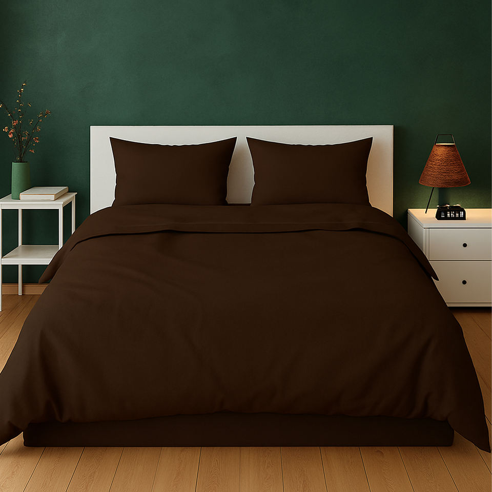 Drap de lit en coton pur 300 TC, brun rustique, excellente qualité, durable et facile d'entretien, disponible à un prix raisonnable.