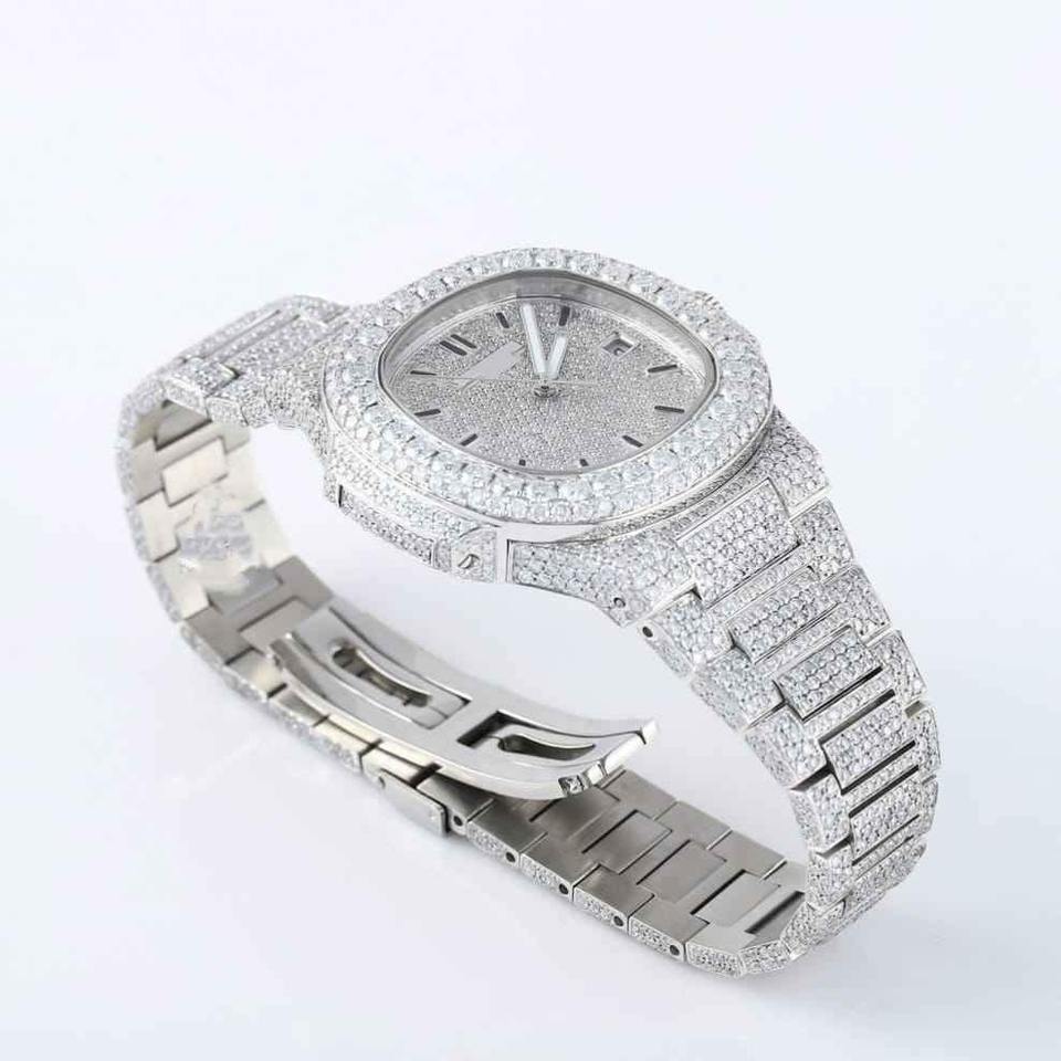 Montre-bracelet en argent de qualité supérieure sertie de diamants glacés avec un look tendance hip-hop et brillant disponible au prix d'usine