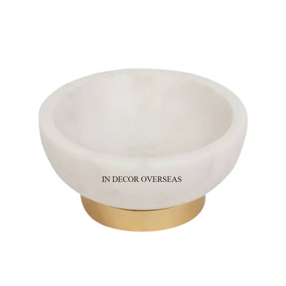 Mortier et pilon de forme ronde en marbre blanc d'excellente qualité avec des outils de meulage d'herbes et d'épices à base de métal plaqué or