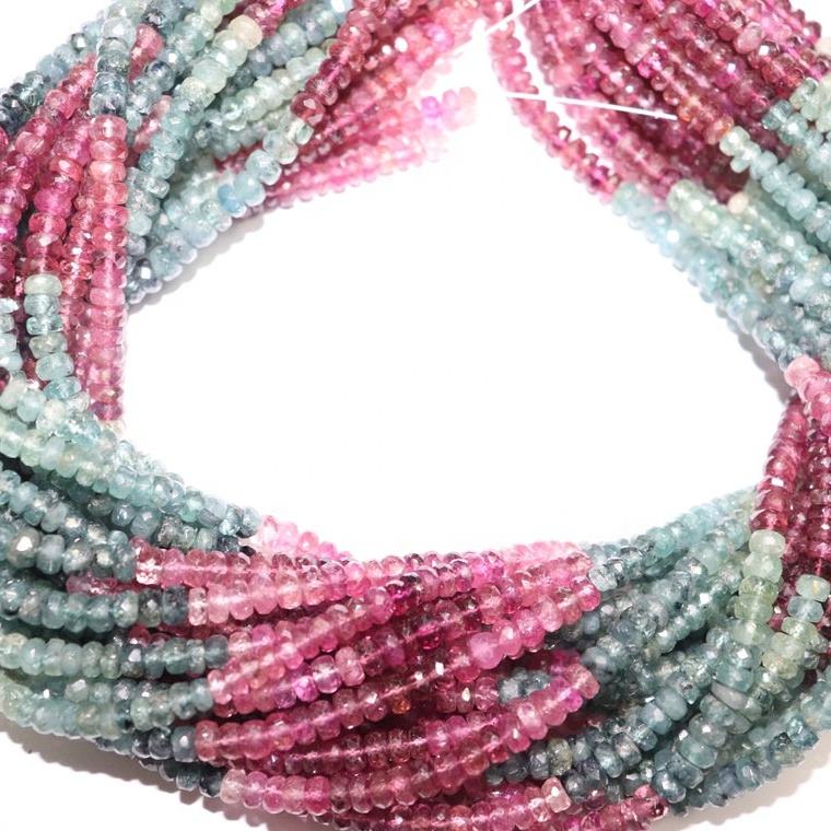 Perles de tourmaline rubellite rondelle à facettes naturelles excellente couleur bleue taille 4-4.5mm pierres précieuses en vrac