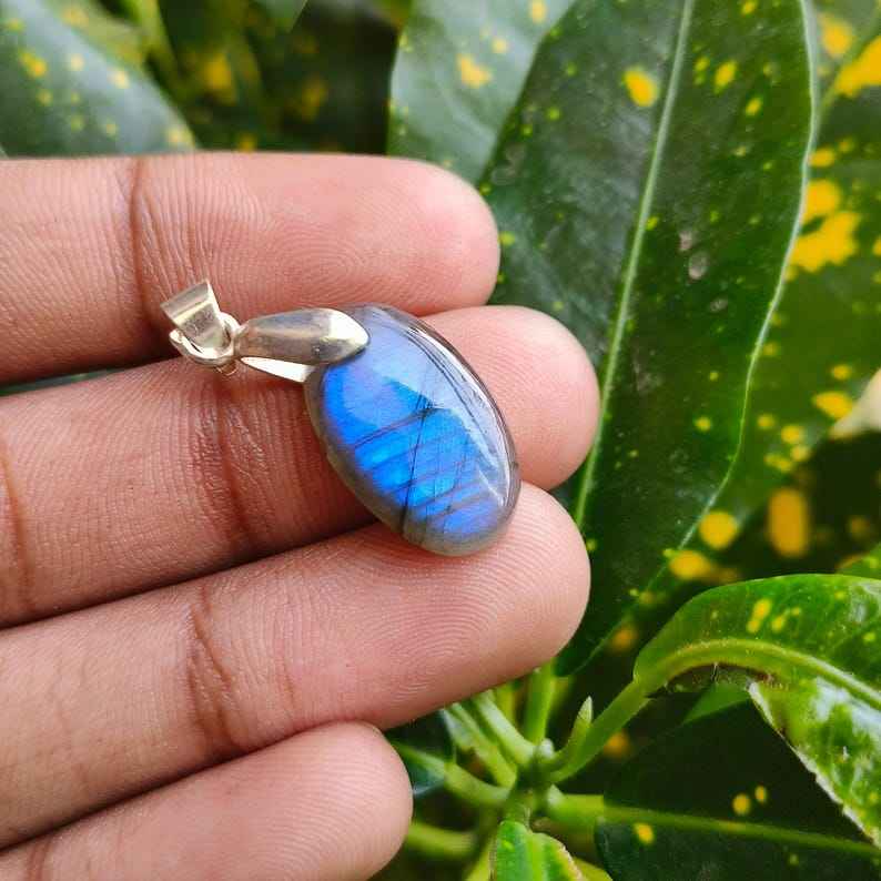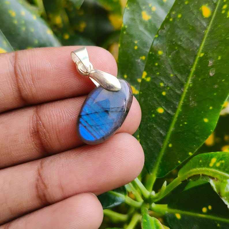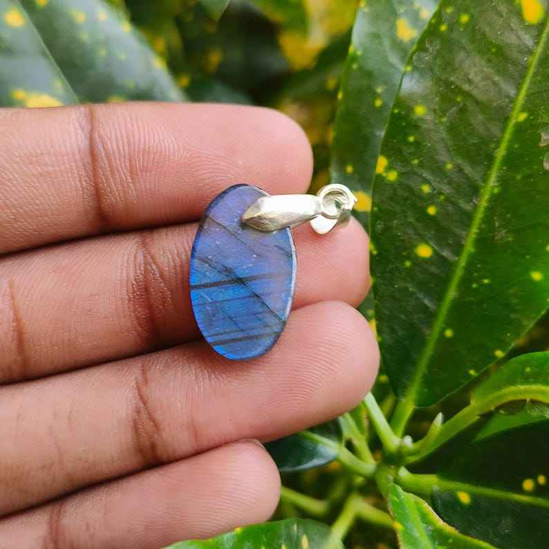 Excellent pendentif de fiançailles en Labradorite bleue naturelle de qualité supérieure Style vintage en argent sterling plaqué or percé taille 20x12x5