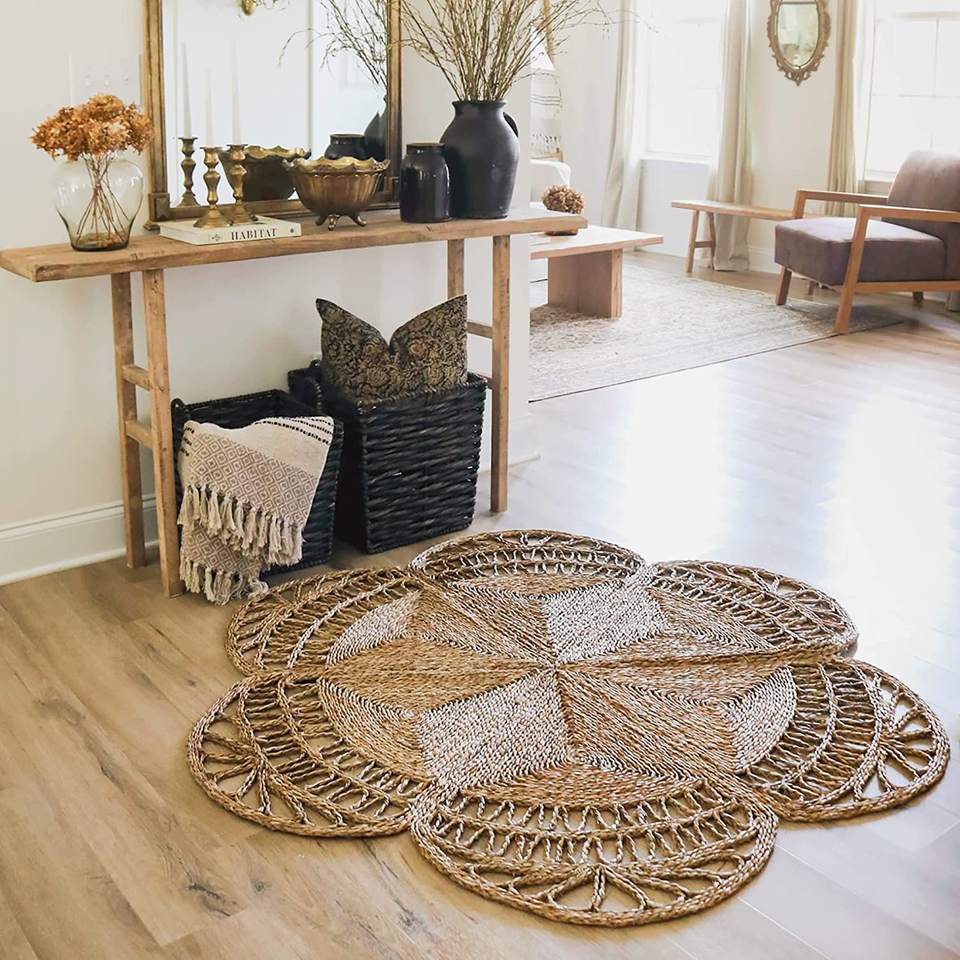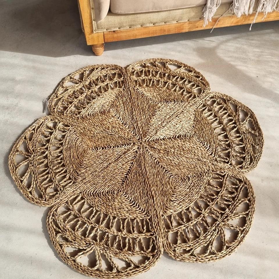 Excellent quality floral seagrass rugs online wholesale handbraided natural flower shape floor carpet lowest price