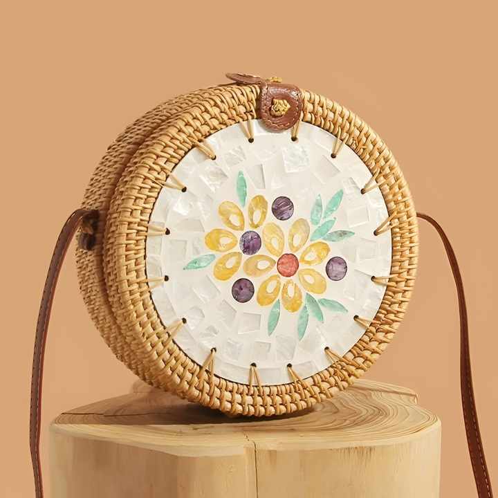 Excellent quality rattan mother of pearl shells handbag eco friendly clutch shoulder bags wholesale