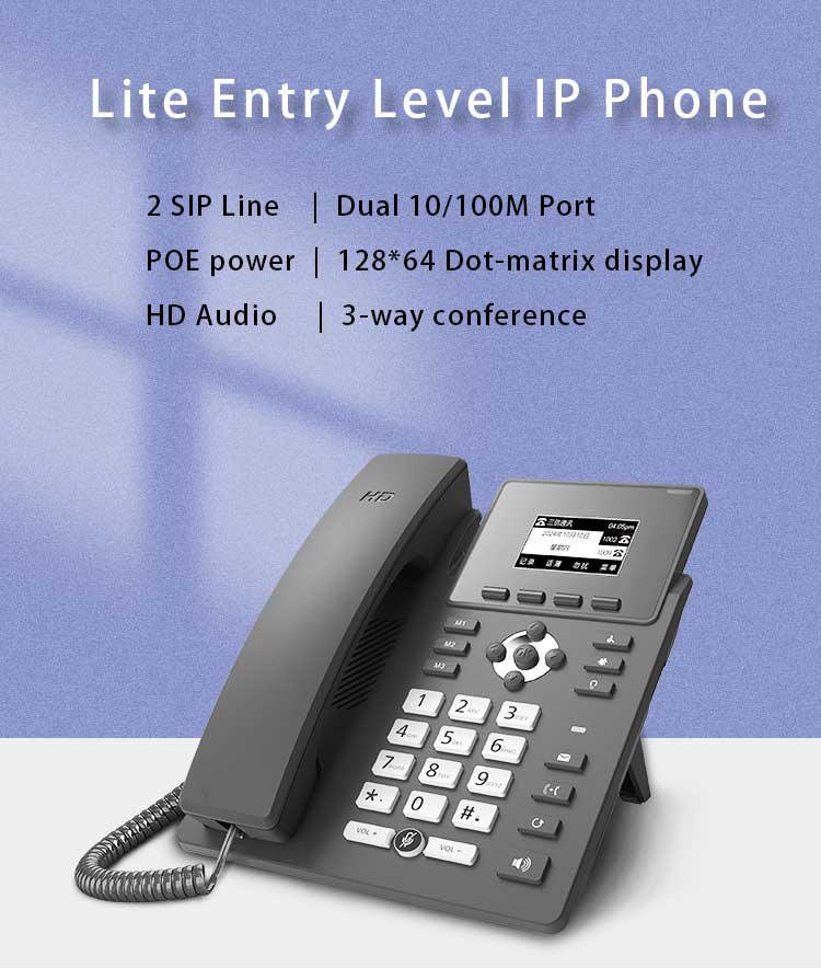 TCP, ip, POE, Affichage 128*64, Qos : 802.1p/Q VLAN couche 3 vers DSCP, SIP version 2.0, SIP : TCP/UDP/TLS, Réseau : TR069/PNP/HTTP/HTTPS/TFTP, Carte TF, RJ45 : 100 M *2, POE : 802.AF, Audio : G.711A/U /G.729/iLBC/G.722/G.726/AMR/ILBC/, VAD/GNV/AEV/PLC/AJB/AGC, TLS/HTTPS/SRTP/MD5/AES, Annuaire téléphonique distant LDAP/XMLRéseau