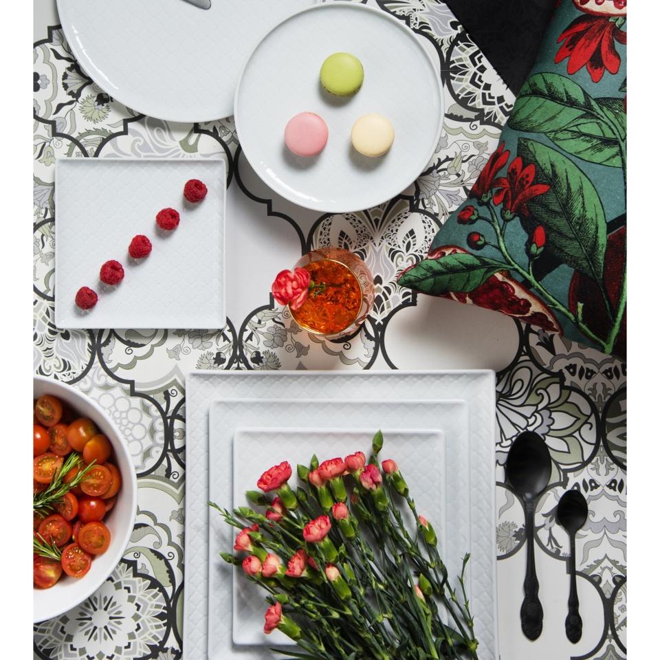 Assiette carrée moderne en céramique Excelsa Antalya 20x5x1,5 cm blanche, résistante au lave-vaisselle