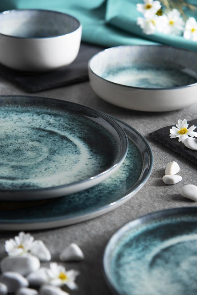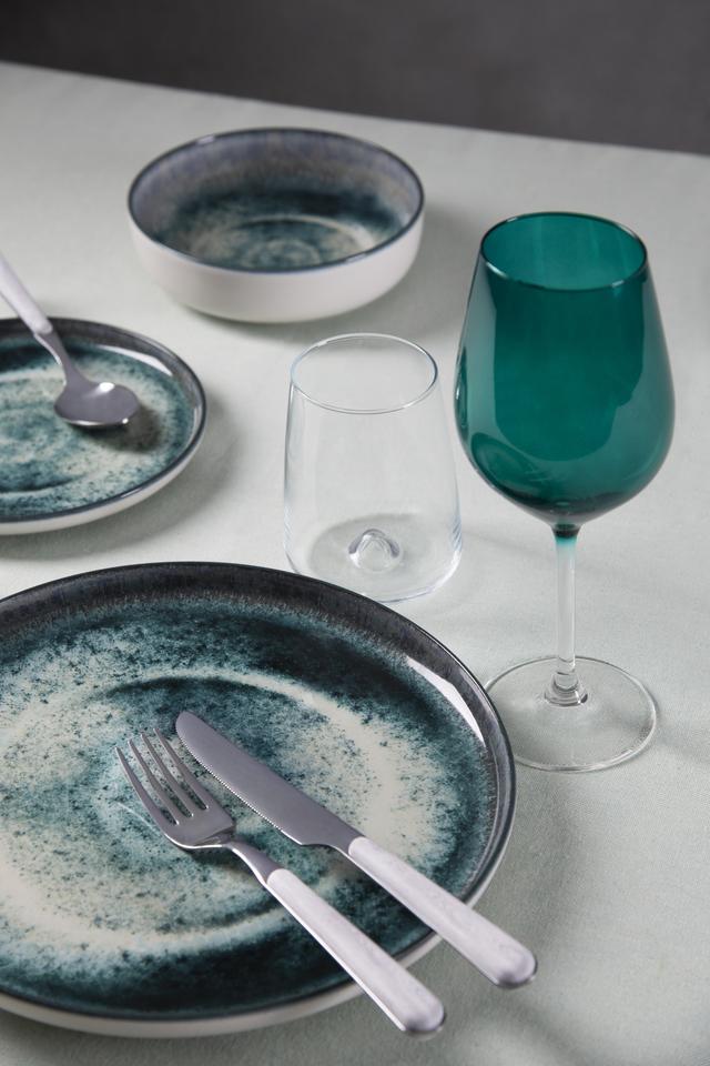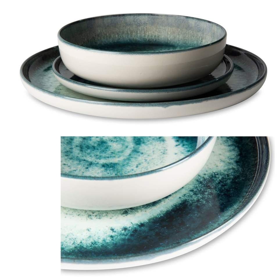 Service de table de 6 assiettes à soupe 18x5 cm, assiettes en céramique verte, impression numérique durable avec pigments réactifs, design italien européen