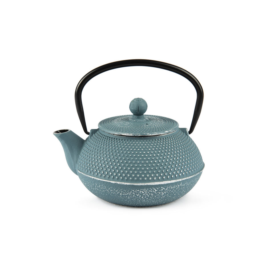 Théière en fonte Excelsa 80 cl bleu clair avec motif à pois pour la préparation du thé