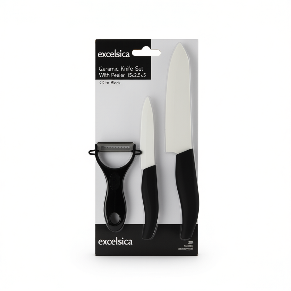 Ensemble de couteaux en céramique Excelsa avec éplucheur 15x2.5x3.5 cm Noir