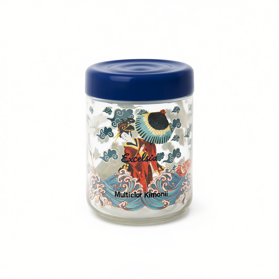 Pot de rangement en verre multicolore Excelsa Kimono 10x13.5x10 cm Fabriqué en Italie Modèle 66144