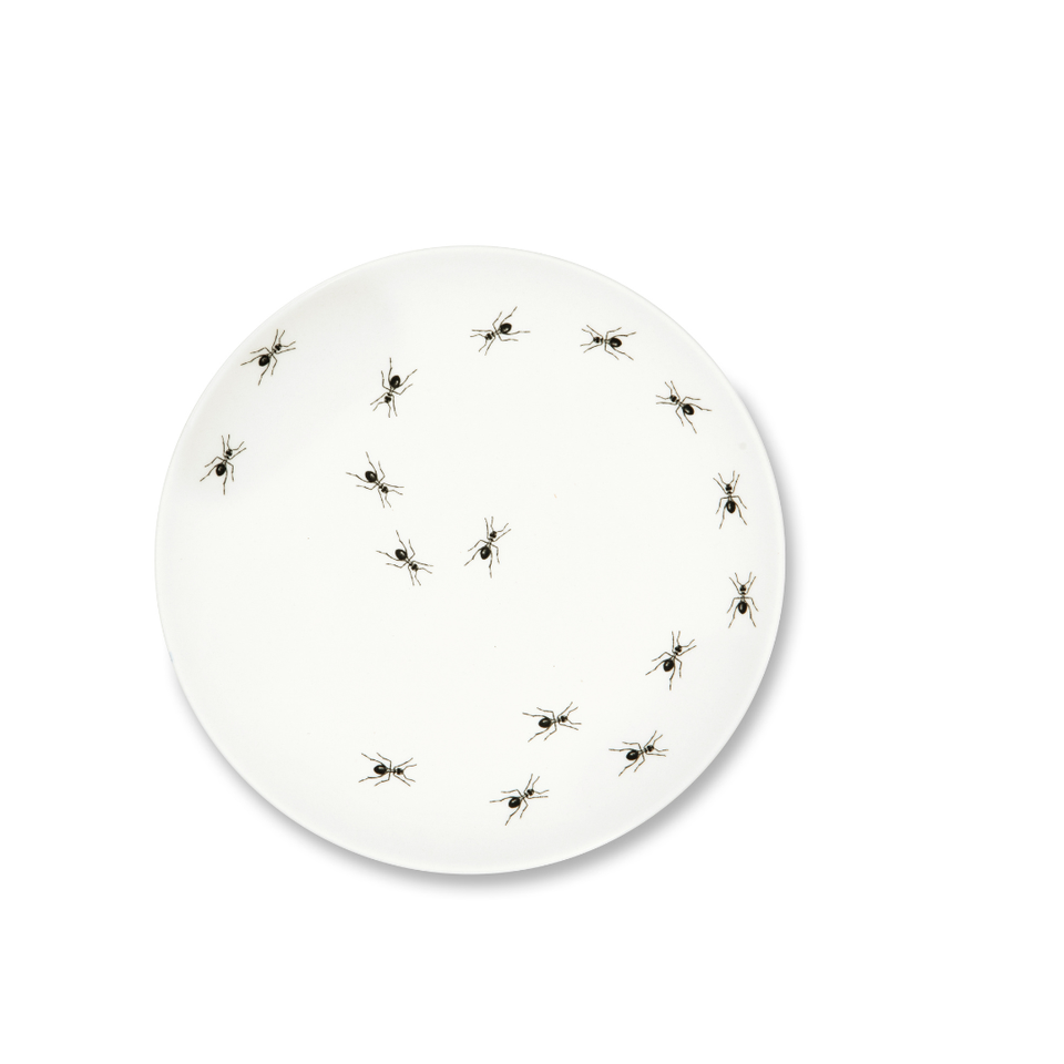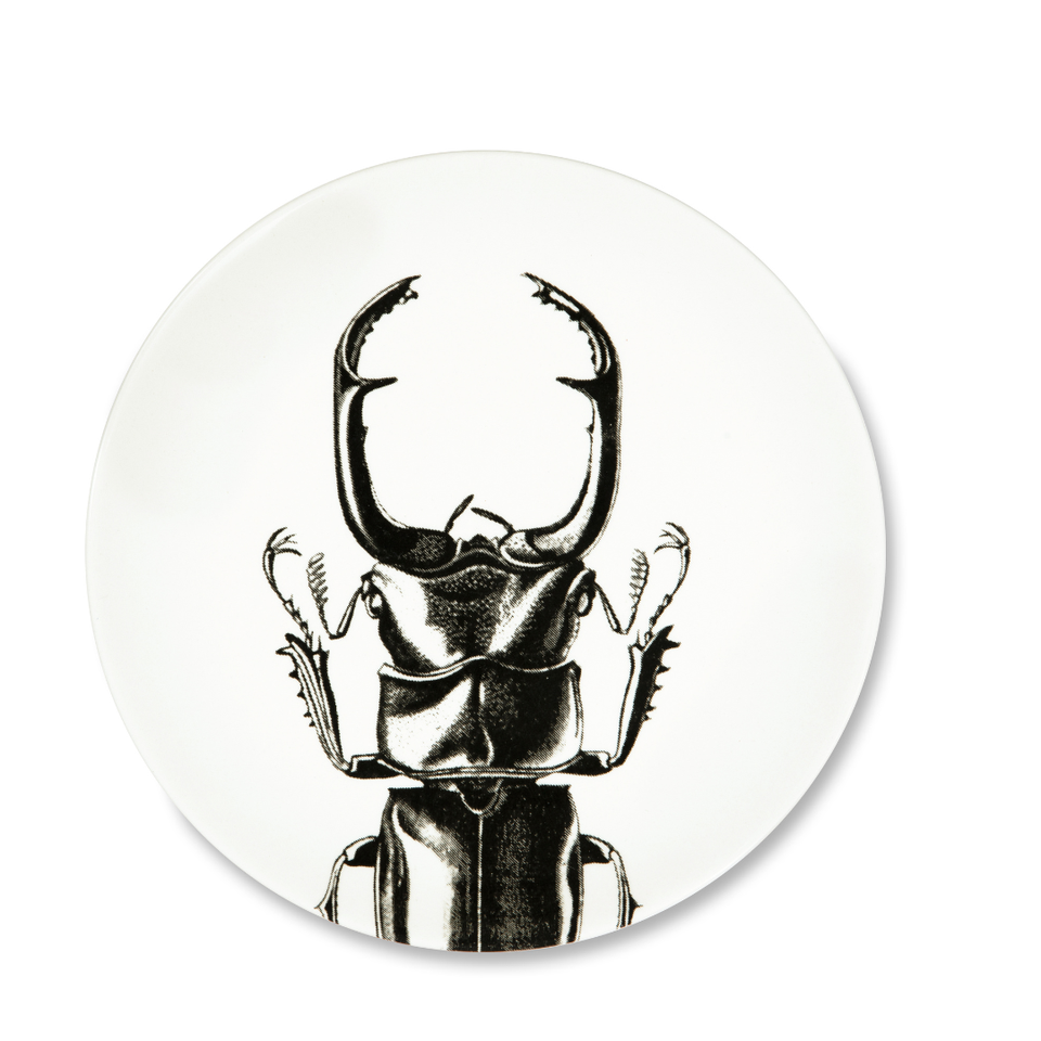 Ensemble de vaisselle en céramique ronde de 3 pièces, assiettes Faune & Flore par Excelsa, technique de tampographie, design animal noir