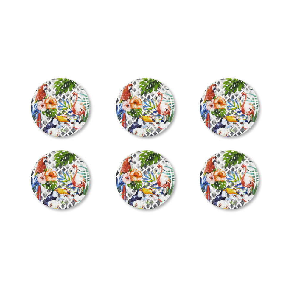 Ensemble Excelsa de 6 assiettes à pizza tropicales en porcelaine, 31 cm, multicolores, modernes, lavables au lave-vaisselle, élégantes, pour une présentation parfaite