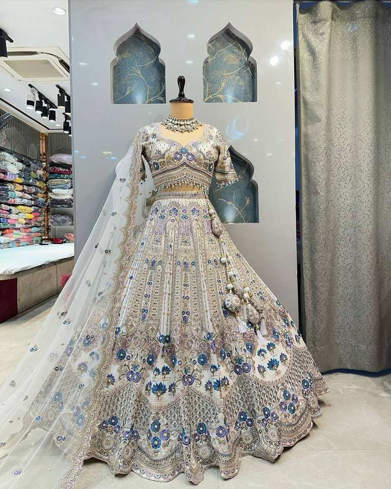 Lehenga Choli évasé de 4 mètres de qualité exceptionnelle, en satin de soie, orné de sequins et de broderies, dernière collection, tenue de mariée traditionnelle pour fêtes.