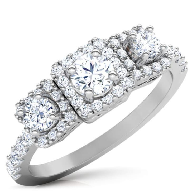 Bague de mariage exclusive en or blanc 14 carats avec diamant solitaire rond véritable de 0,80 carat | Bijoux fins de fiançailles Halo Bridal pour femmes