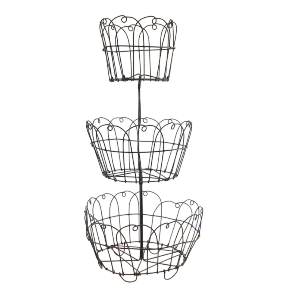 Panier de rangement en fil de fer à 2 niveaux exclusif, support à fruits et légumes en métal de forme personnalisée avec finition noire, fait à la main en vrac