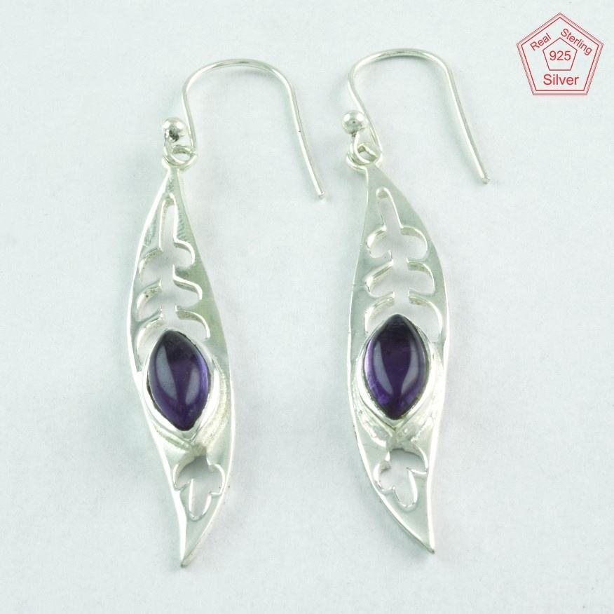 Boucles d'oreilles exclusives en argent sterling 925 avec des bijoux de mariage en pierre d'améthyste pourpre de feuille attrayante du fabricant indien