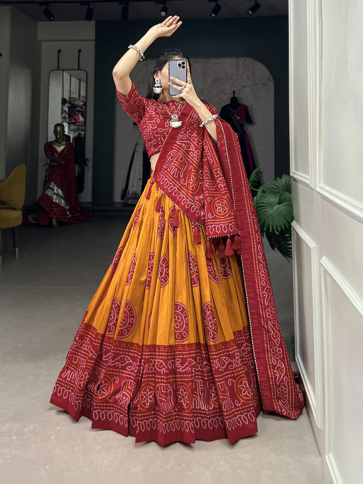 Lehenga Work:Bandhej Print