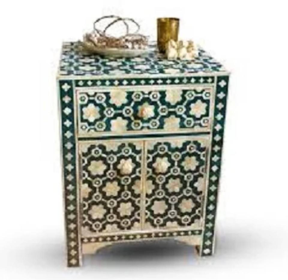 Meuble de rangement en bois artisanal exclusif avec incrustations d'os, pour un design d'intérieur haut de gamme
