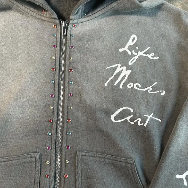 Sweat-shirt à capuche personnalisé exclusif avec strass, style streetwear, oversize, fermeture éclair, pour fans de hip-hop, mode hip-hop pour hommes et femmes