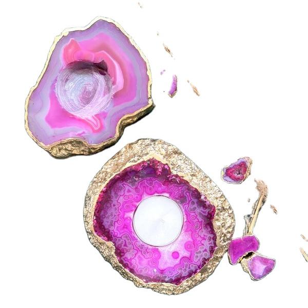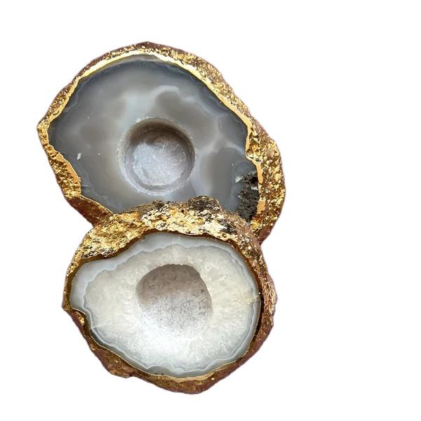 Bougeoir à tiroir décoratif exclusif en pierre d'agate bleue Poignées polies à bord doré pour meubles de maison, de bureau et d'hôtel