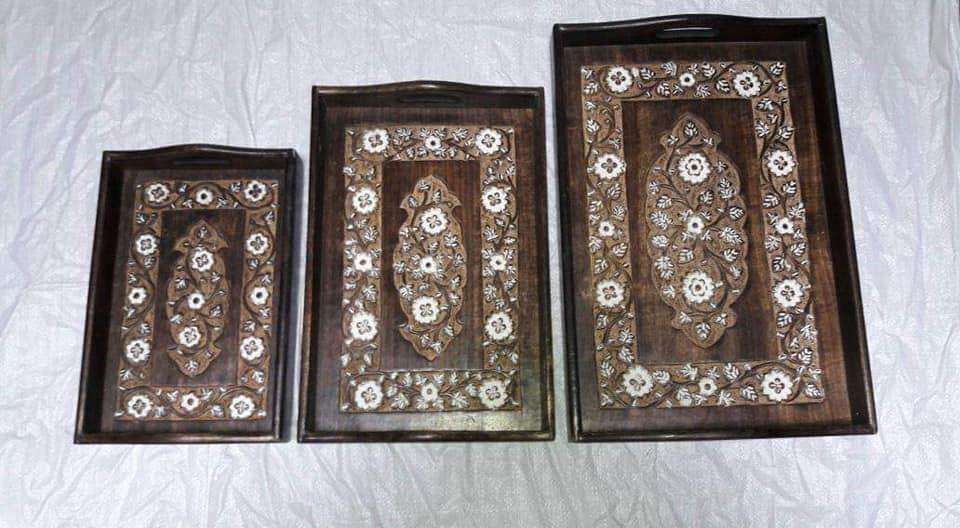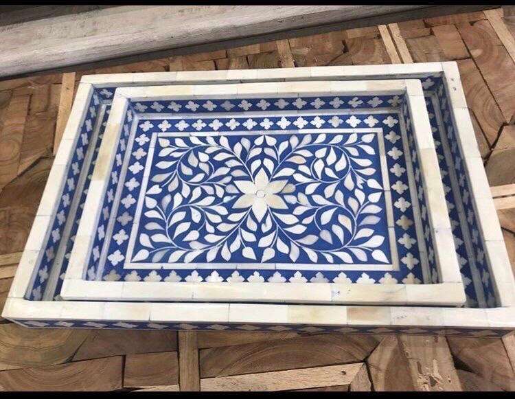 Plateau de service en incrustation d'os au design exclusif Plateau fait à la main au design floral Plateau de service décoratif pour la maison, l'hôtel et le restaurant