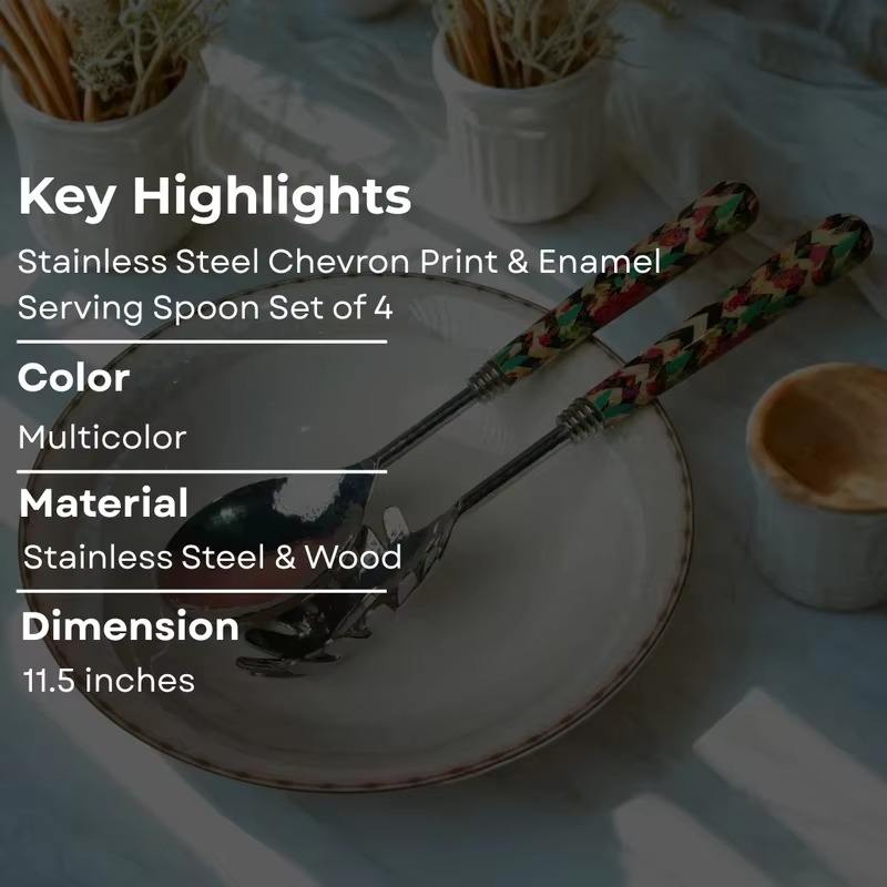 Exclusive Design Gold Metal Salad Server Spoon and Fork Set with Resin zig zag Pattern Handle for Dining Table Salad Server Sets