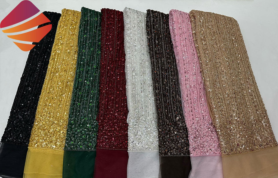 Nom du produit:Tissu de dentelle brodée de perles de luxe