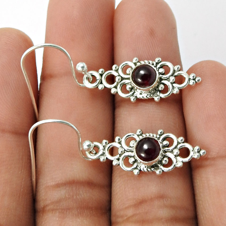 Boucle d'oreille grenat rouge au design exclusif Boucles d'oreilles en argent sterling 925 avec pierres précieuses naturelles et aspect artisanal Fournisseurs de bijoux faits à la main