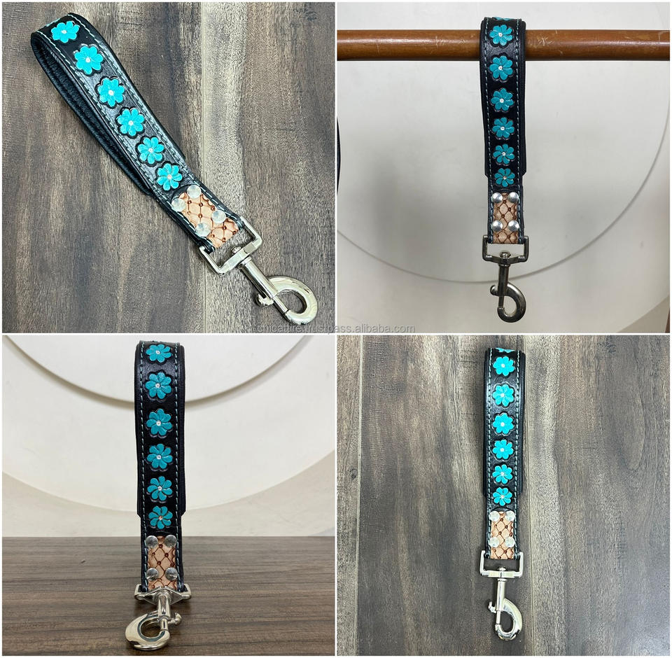 Poignée de plomb en cuir usiné à la main de concepteur exclusif Turquoise Floral Traffic Lead Supplies Accessoires Laisse de chien pour la formation