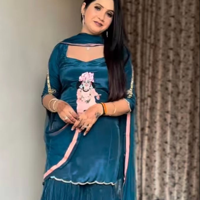 TRAVAIL SHARARA:Avec la frontière de fantaisie entièrement Flair.-Longueur *:40-41 pouces. * (entièrement cousu) *