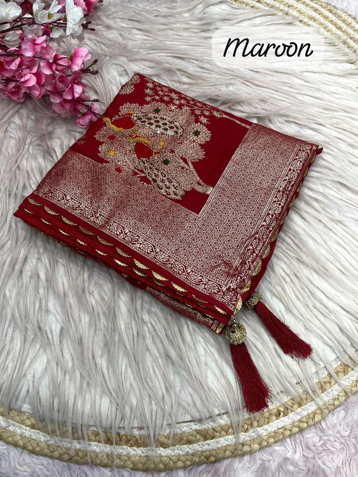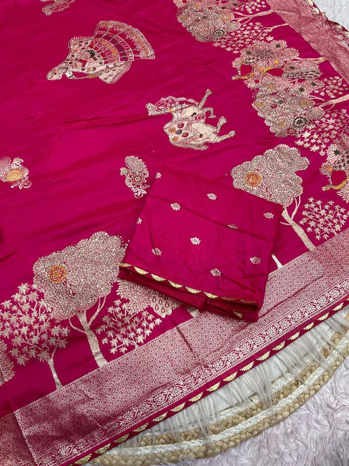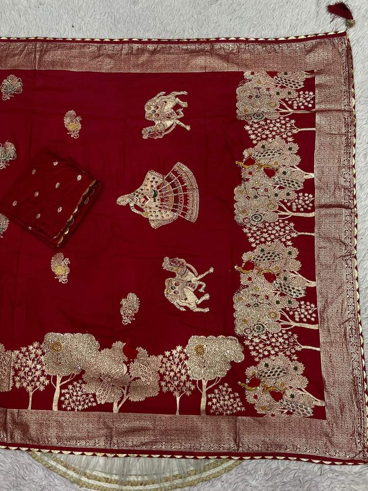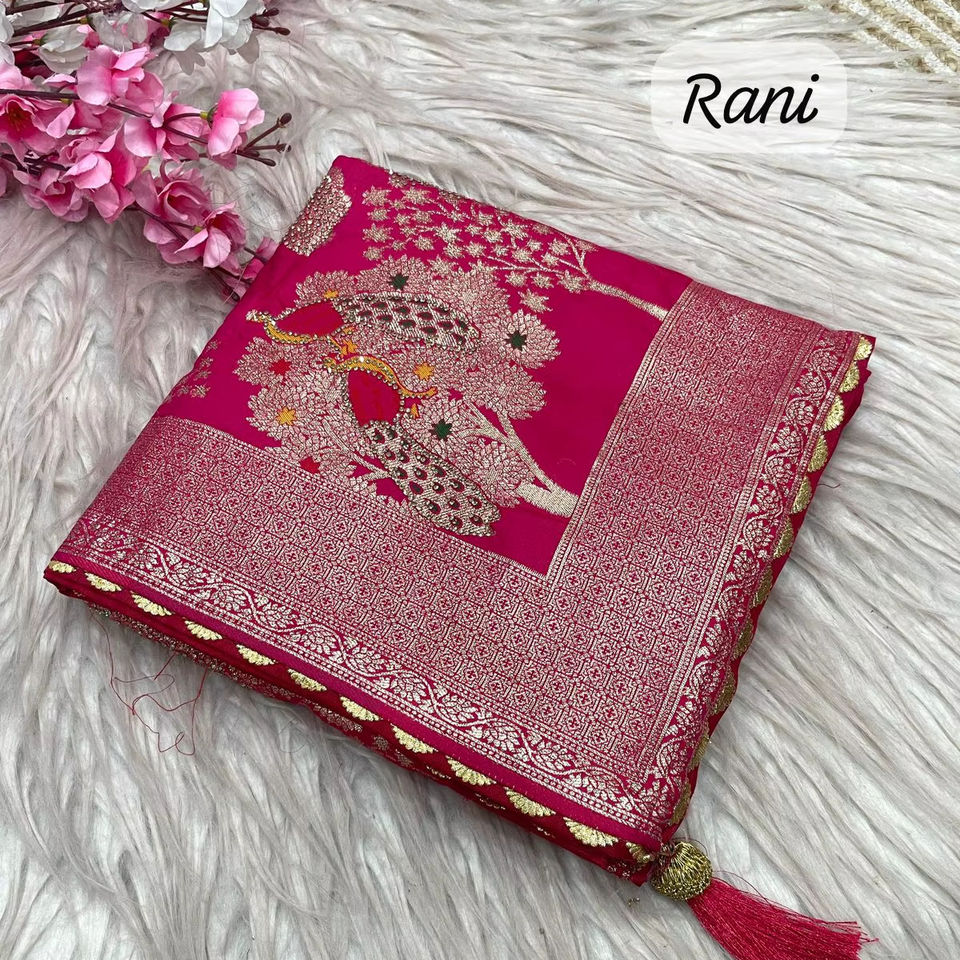 Sari en soie Dola au design exclusif et élégant avec chemisier raffiné, tenue ethnique tendance et chic, dernière mode indienne, vêtement de fête modeste pour femme