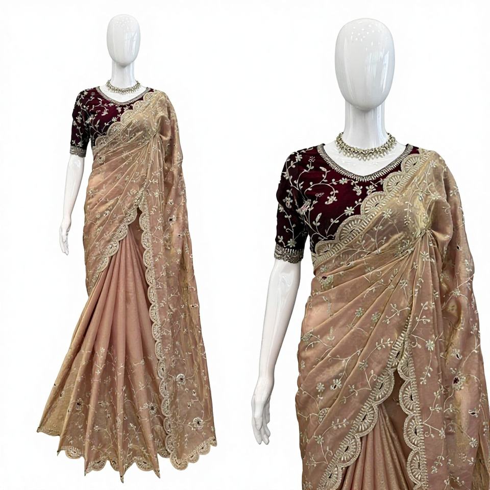 Sari en soie Fendy au design exclusif et élégant avec chemisier raffiné, dernière collection indienne, tenue de soirée ethnique et modeste pour femme