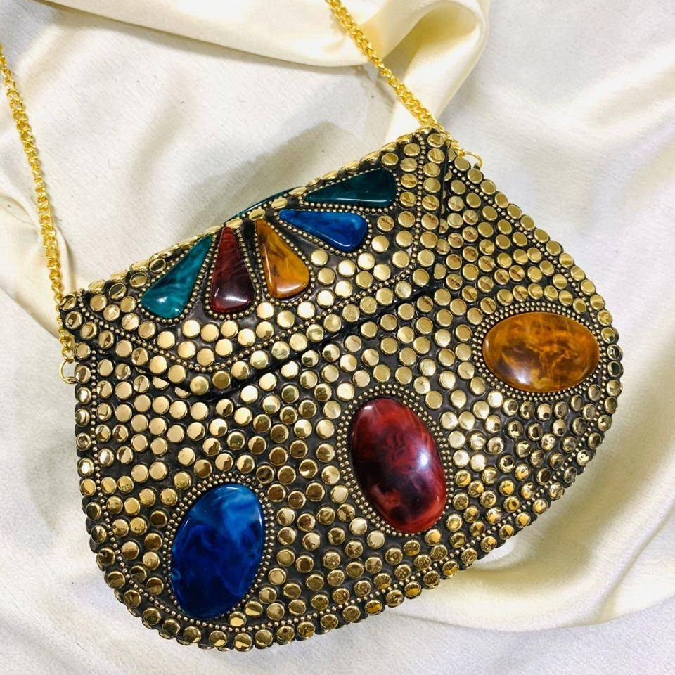 Sacs à main de soirée en mosaïque métallique de créateur exclusif, pochettes élégantes