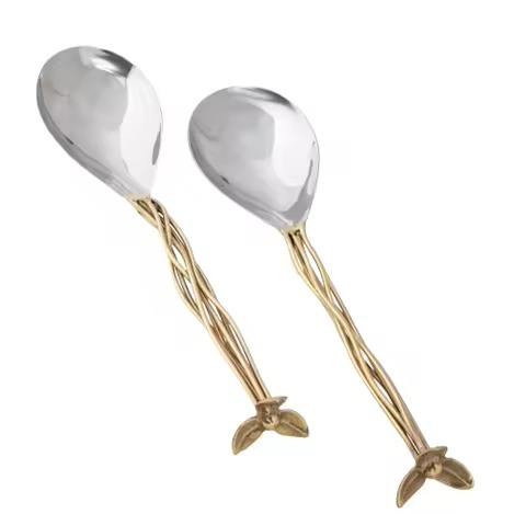 Ensemble de couverts de service pour salade en acier doré de designer exclusif, cuillère et fourchette, manche en bois, caractéristique durable, pour la maison, les hôtels, couverts miroir