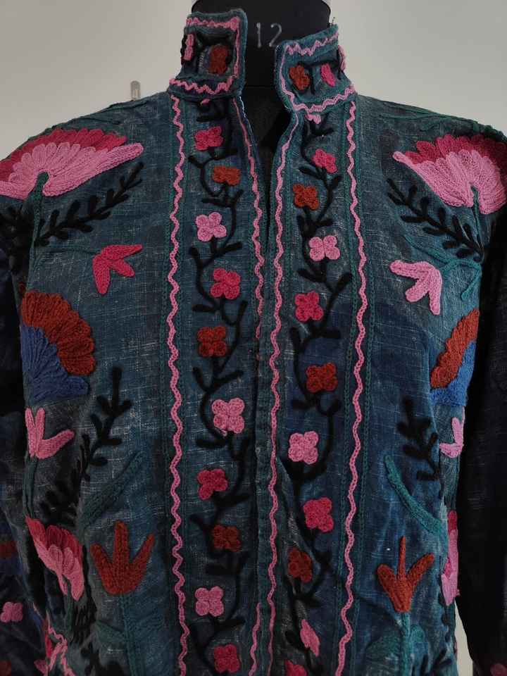 Veste Suzani brodée à la main exclusive, veste Suzani en coton, tissu TNT, veste bohème pour femmes, veste Suzani brodée, veste Suzani brodée SALT